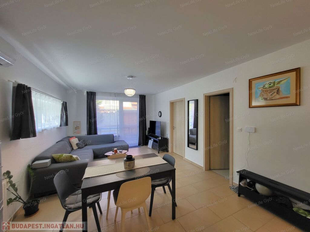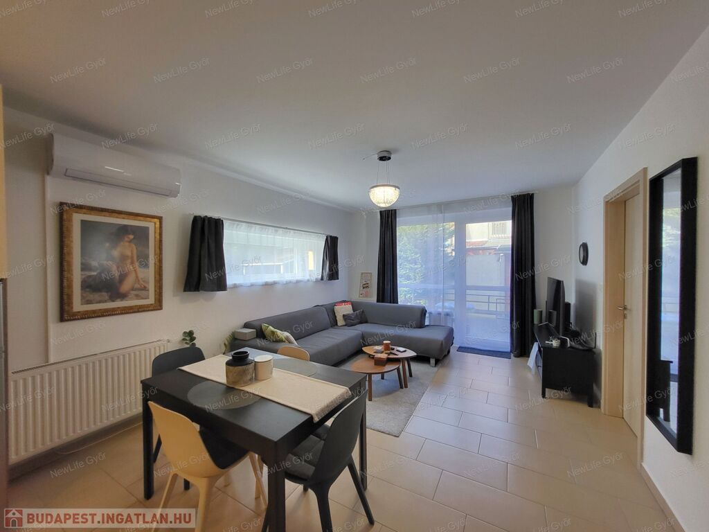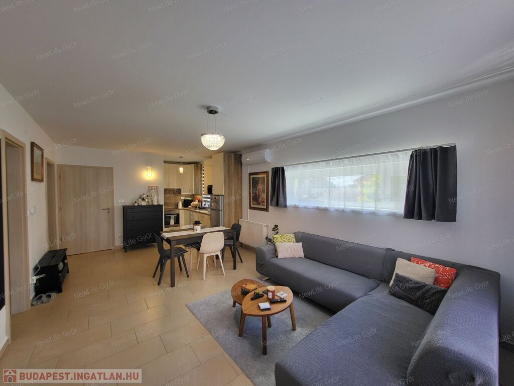 Eladó Győr egyik legkedveltebb, csendes kertvárosi részén, Ménfőcsanakon egy 2016-ban épült, újszerű állapotú, 59 m²-es földszinti lakás, amelyhez egy 94 m²-es, teljesen körbekerített saját udvar tartozik.
