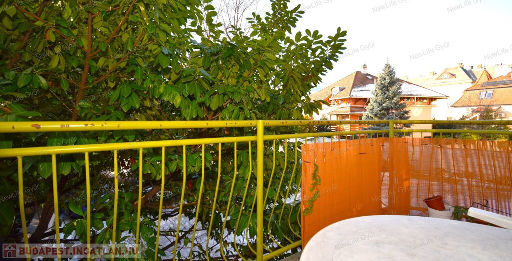 A lakás nagy előnye, hogy 7,5 m2-es fákkal körülvett erkélye a közös udvarra néz, így az nagyon jól kihasználható kora tavasztól késő őszig.