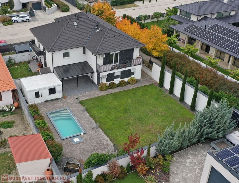 Kiemelkedően igényes, csendes, rendezett környezetben kínálok eladásra egy 2 szoba + nappalis, 61 m²-es lakást, amelyhez 350 m² saját használatú telekrész, 25 m²-es terasz, medence, 20 m²-es kerti faház és 2 gépkocsibeálló is tartozik.