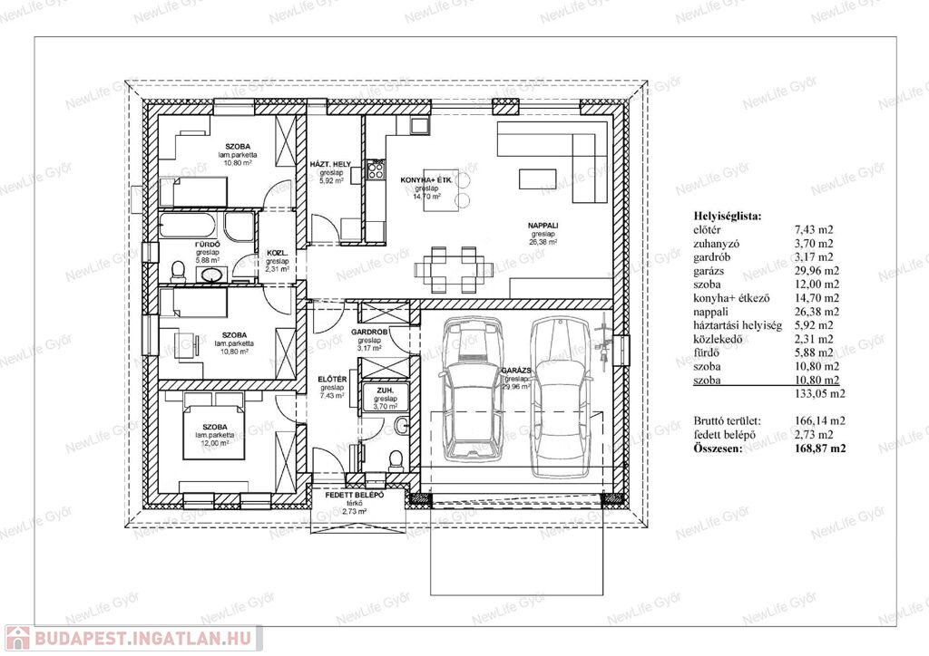 Legyen új, saját otthona és költözzön még idén!  Győrladaméron, családi házas övezetben, megbízható, igényes kivitelezőtől kínálom megvételre ezt az 501 m2-es telekre épülő 133 m2 alapterületű 3 hálószoba+ nappali-étkező-konyhás újépítésű házat dupla garázzsal és 20m2-es terasszal.