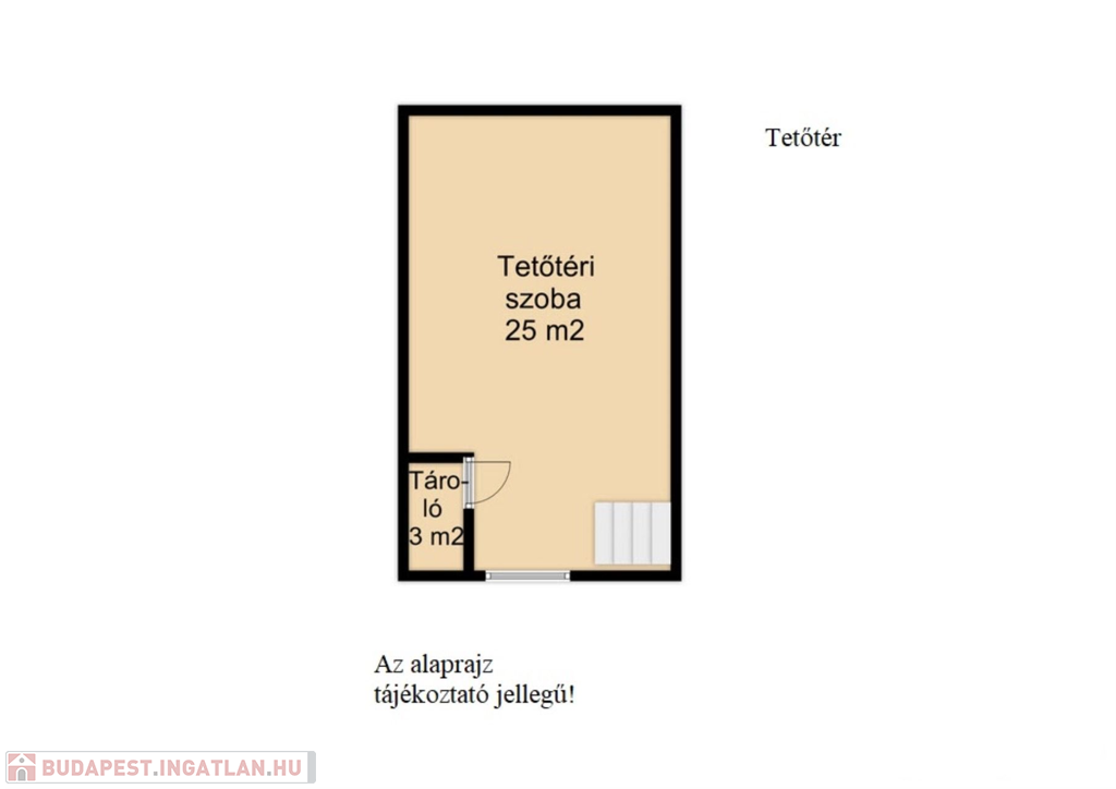A lakás lenti része 36 m2, de mivel a tetőtér is beépítésre került, az ott lévő szoba és tároló hely hasznos terülte még plusz 28 m2.
