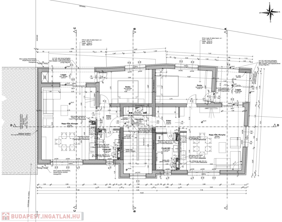 - alapterület: 78,32 nm-es (amerikai konyhás nappali+3 szoba, 2 fürdőszoba, erkély), 82 nm-es (amerikai konyhás nappali+2 szoba, gardrób, loggia, WC, fürdőszoba), 64,37 nm (amerikai konyhás nappali+1 szoba, előtér, fürdőszoba, loggia), 58,1 nm (amerikai konyhás nappali+1 szoba, előtér, fürdőszoba, loggia)