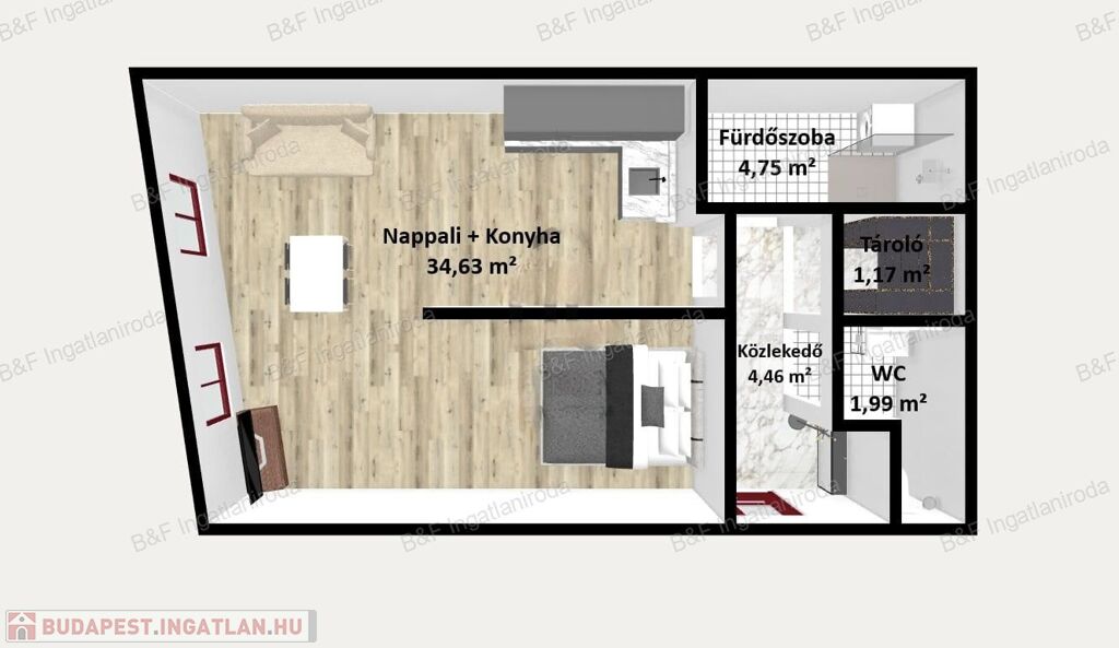 - Több féle kialakítási lehetőség (akár 1+2 fél szobássá is lehet alakítani)