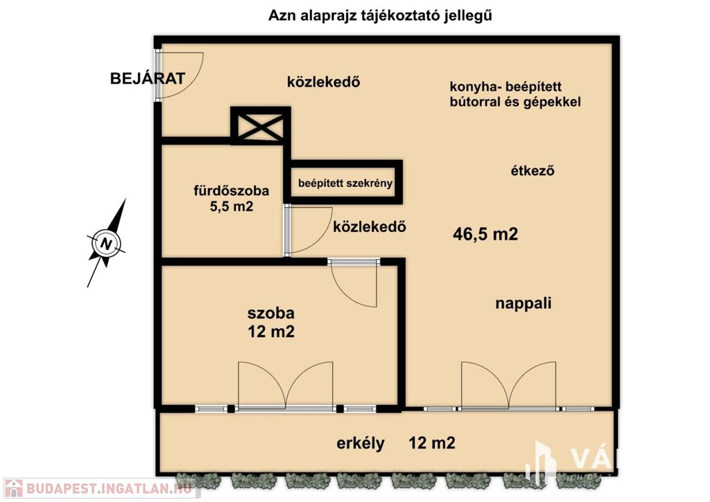 A lakás keleti tájolású, 59 m2 és egy 12 m2-es erkély tartozik hozzá.