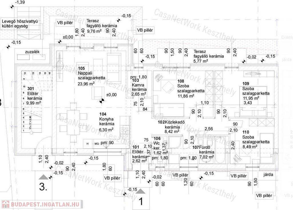 alapterülete 89 m2 (amerikai konyhás nappali, 3 hálószoba, fürdőszoba, wc, közlekedő), amelyhez egy