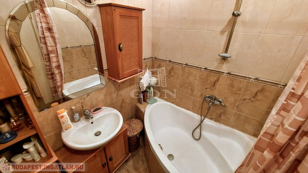 A fürdőszobában sarokkádat találunk, a WC külön helyiségben lett elhelyezve.