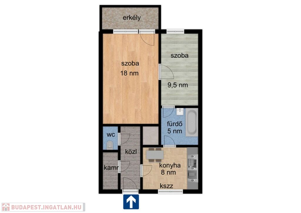 - Nappali ,1 szoba, fürdő, konyha, WC, kamra, erkély.