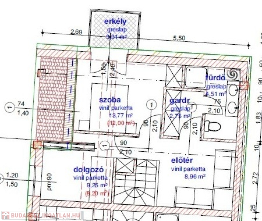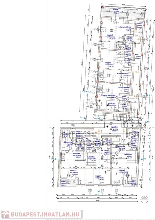 A projekt 5.-ös számú, első emeleti lakása 79,86 m2 lakóterületű, belső kétszintes kialakítású.