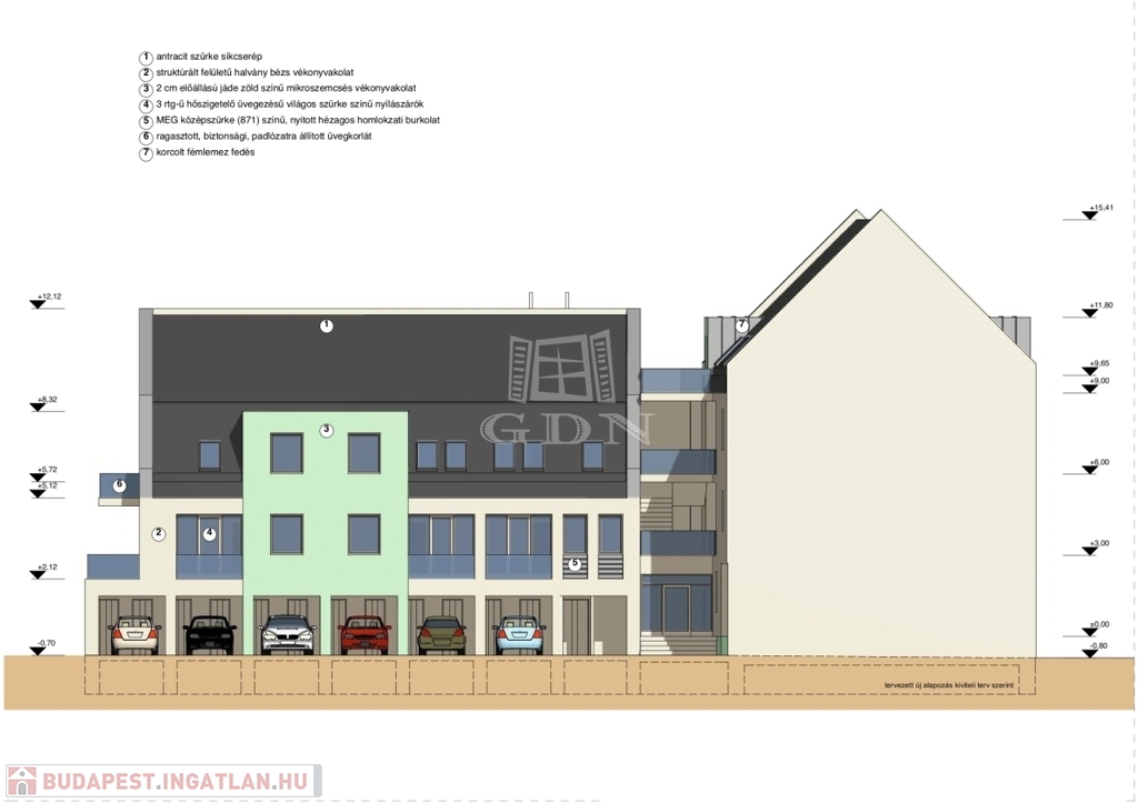 A társasház zárt, elektromos kapubeállóval ellátott udvarán kialakított felszíni beállóhely 2.500.000. Ft-ért, míg "garázs" és hozzá tartozó dupla méretű tároló helyiség 8.000.000.-Ft-ért vásárolható a lakásokhoz.