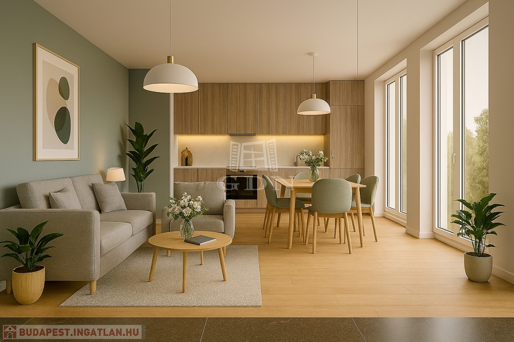 A jól átgondolt terveknek köszönhetően a lakás elosztása kiváló, az életterek kialakításánál a funkcionalitás dominált, kényelmes teret biztosítva leendő lakóinak.