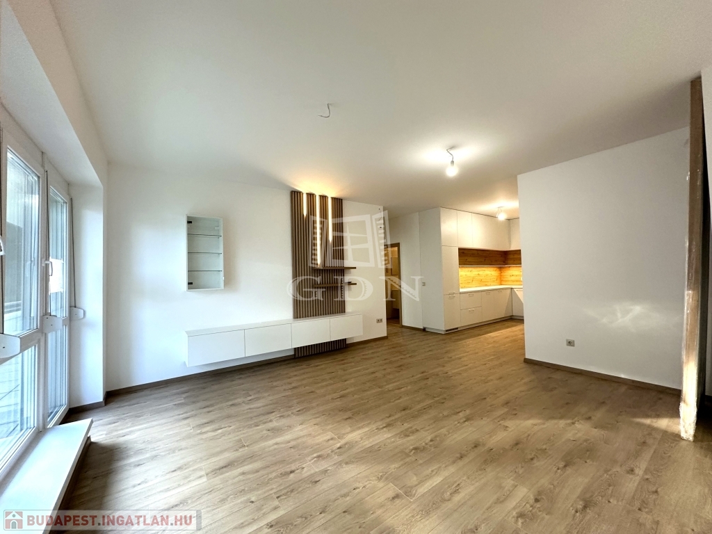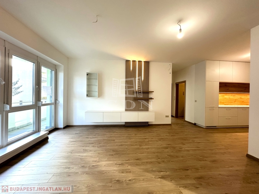 A 13-as számú lakás nettó fűtött alapterülete 81 m2, melyhez egy fantasztikus, kuriózumnak tekinthető 53 m2-es erkély is tartozik. A lakásban a tágas és világos amerikai konyhás nappalin túl további 2 szoba, előtér, fürdőszoba, mellékhelyiség, közlekedő és egy kamra került kialakításra.
