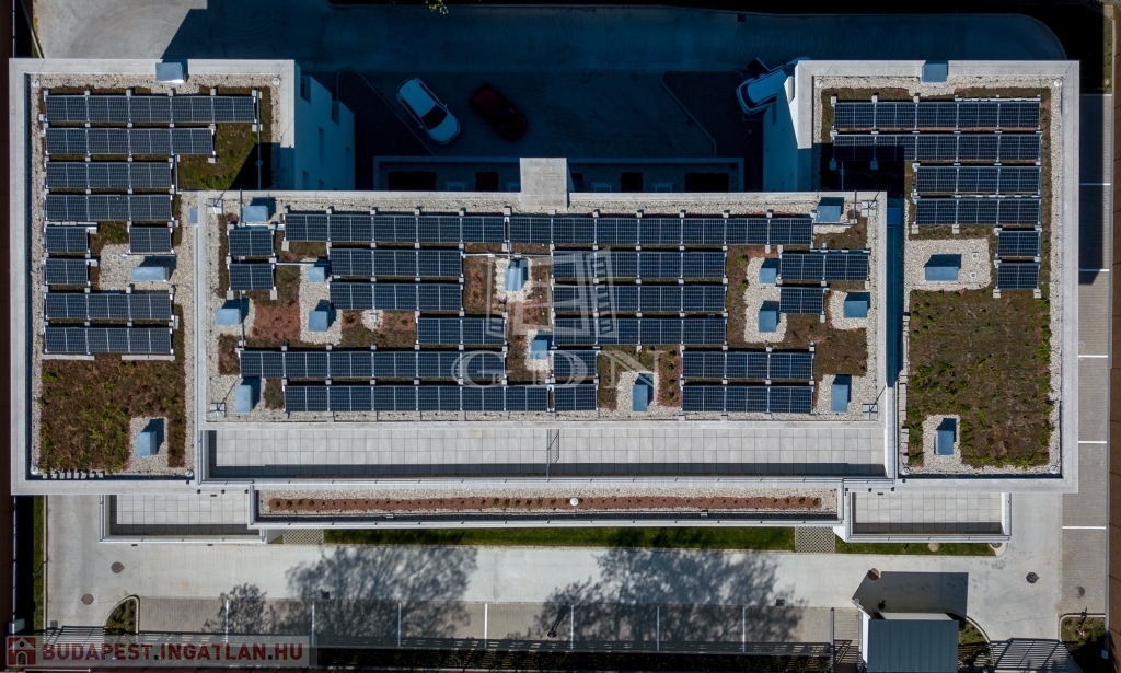 A tetőn található nagy teljesítményű napelemrendszernek köszönhetően a lakások fenntartási- rezsi költsége kifejezetten alacsonyan tartható lesz majd.
