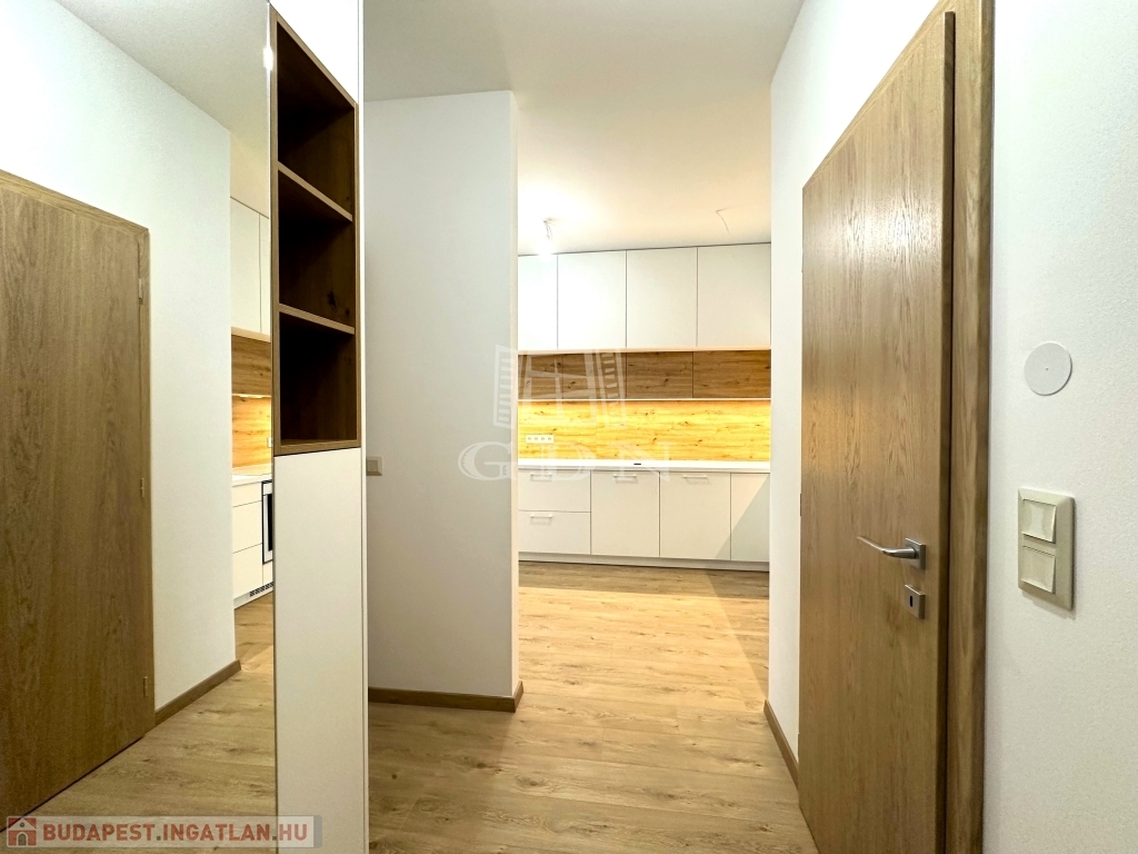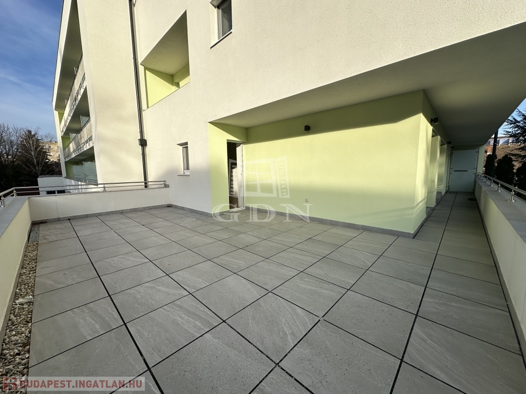 A 9-es számú lakáshoz egy fantasztikus, kuriózumnak tekinthető 53 m2-es erkély is tartozik. A lakásban a tágas és világos amerikai konyhás nappalin túl további 2 szoba, előtér, fürdőszoba, mellékhelyiség, közlekedő és egy kamra került kialakításra.