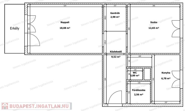 A lakásban két különnyíló szoba biztosítja a privát életteret és a nyugalmat, így akár pároknak, akár egyedül élőknek is tökéletes választás.