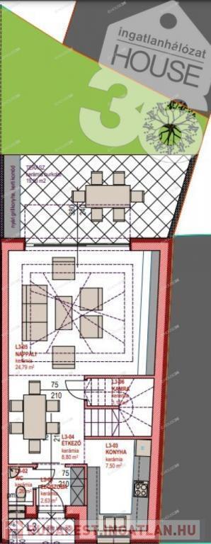 4. lakás: 90,14 m2, terasz: 29,20 m2