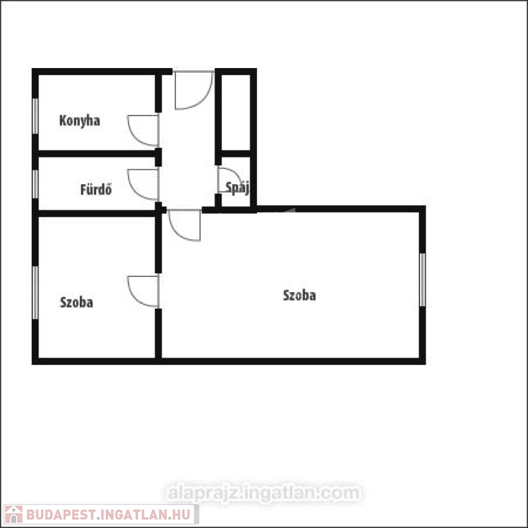 Alsó szinten egy 19 nm szoba, konyha, wc, fürdőszoba tusolóval.