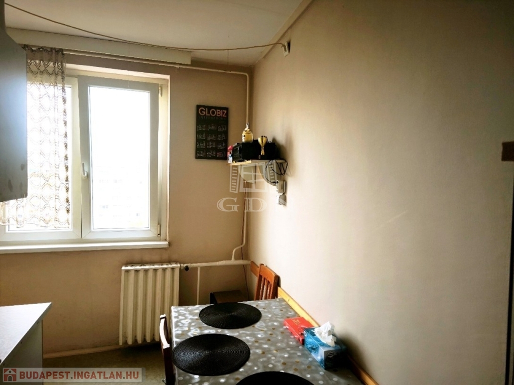 A lakás a 10. emeleten található egy panel, liftes épületben.