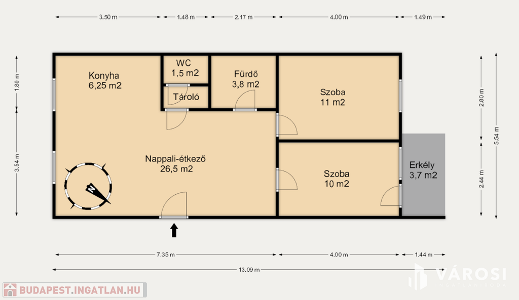 Praktikus elrendezésű, található benne 2 kényelmes szoba, egy tágas nappali-étkező-konyha, amely ideális a hétköznapi főzésekhez és baráti összejövetelekhez egyaránt, a külön fürdőszoba és WC pedig megkönnyíti a mindennapokat.