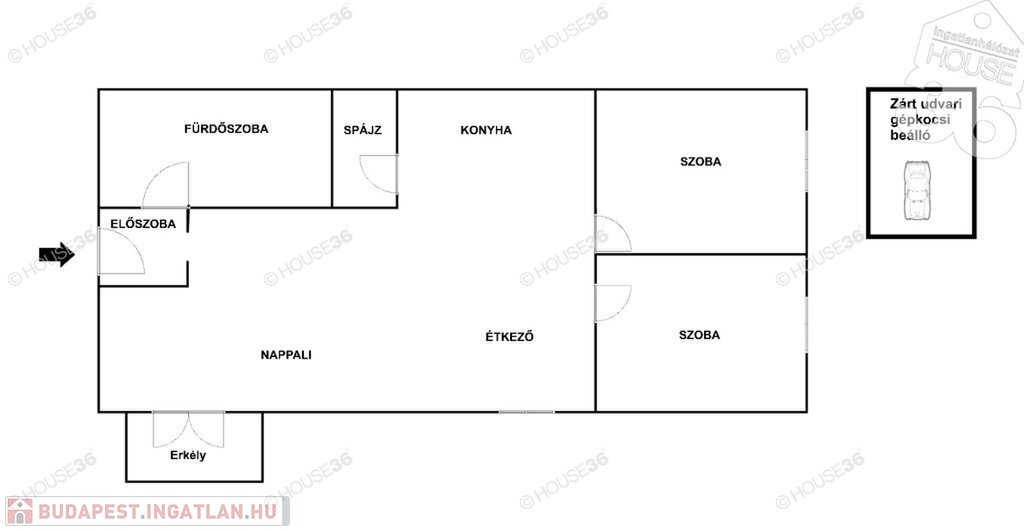 zárt udvari gépkocsi beálló, amelyet az ár tartalmaz!