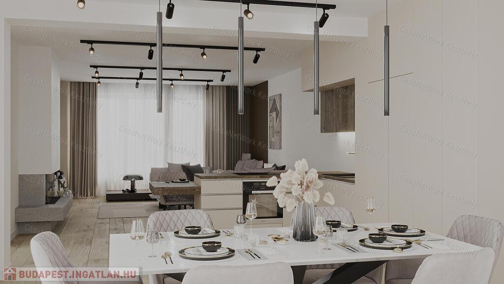 Keszthely frekventált és keresett városrészében eladó 2023-as átadással dupla komfortos 140 m2-es lakás +30 m2-es terasszal, 2 db kocsibeállóval, elektromos kapuval és saját kerttel!