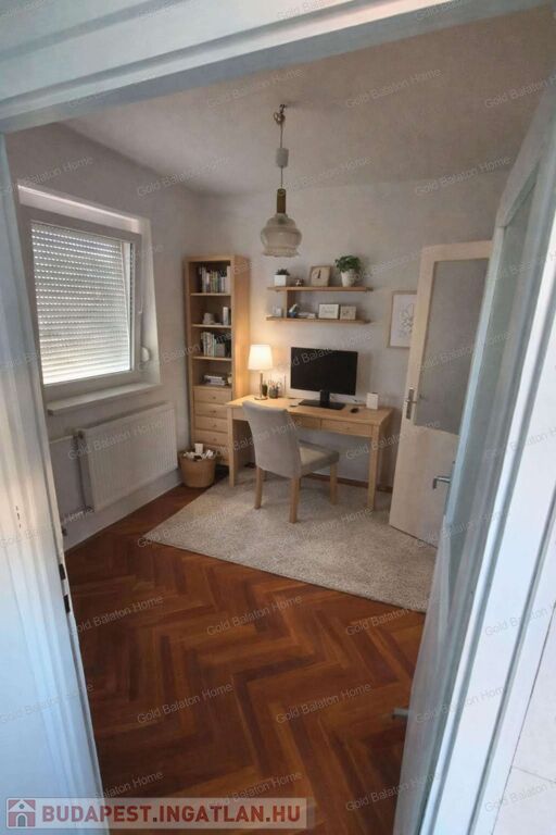 Lakás helyiségei: előszoba, 2 szoba, konyha, kamra, dolgozószoba/étkező, fürdőszoba zuhanyzóval és WC-vel, külön WC, erkély.