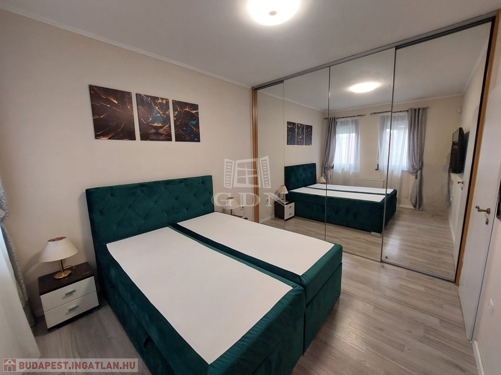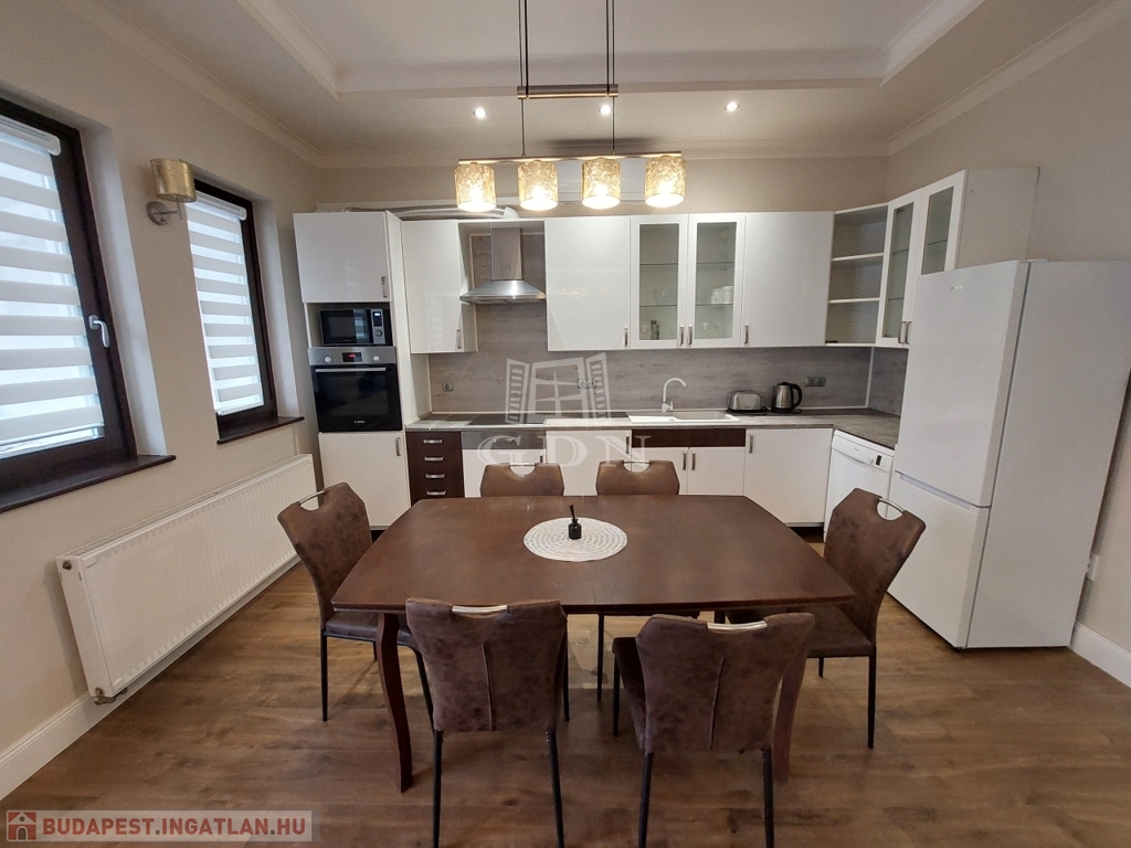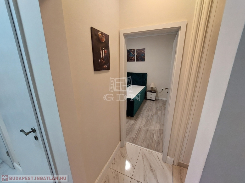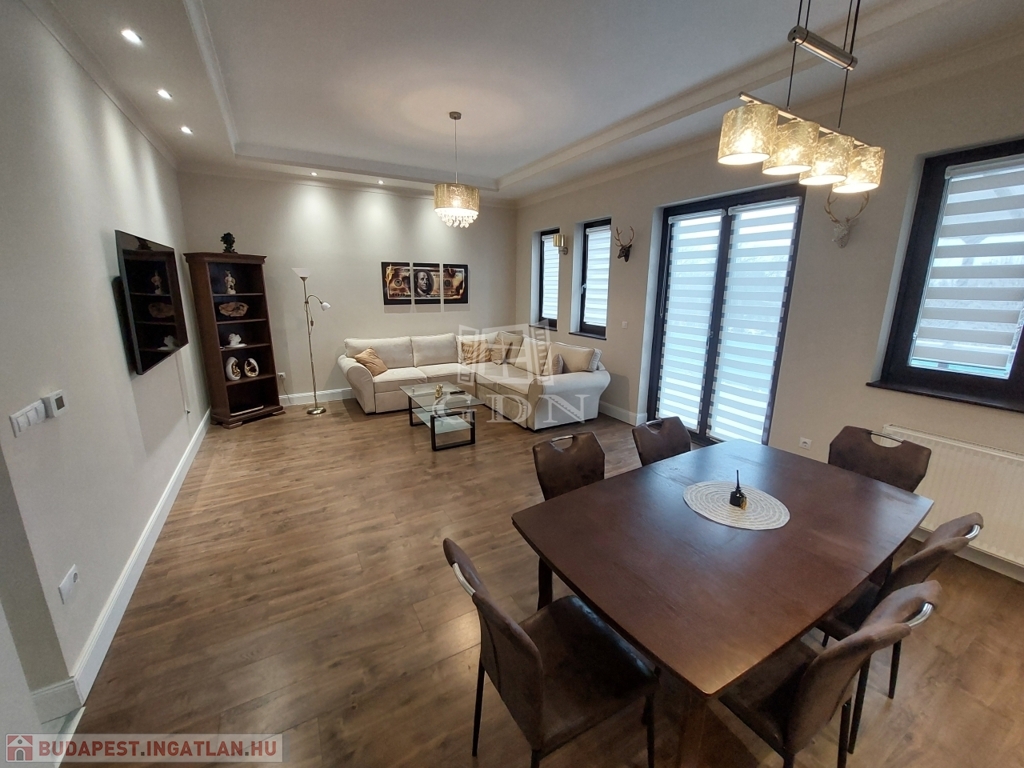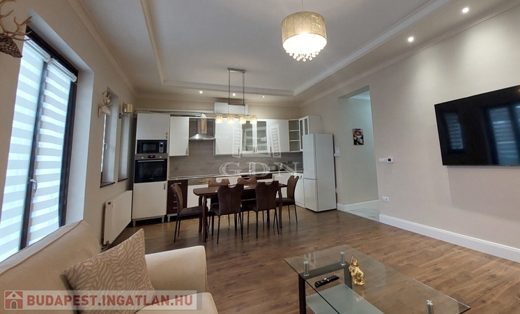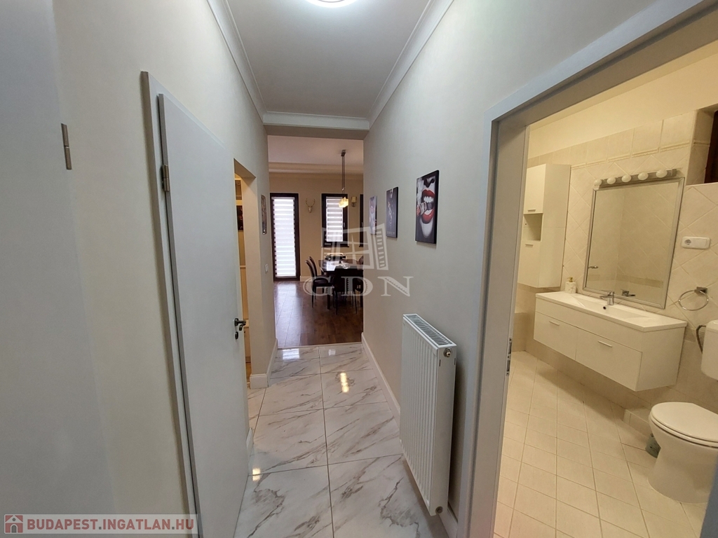 A belső elrendezés minden részlete tudatos tervezés eredménye. Az előtérből külön vendég WC nyílik, valamint egy exkluzív fürdőszoba, ahol wc, kád és zuhany is rendelkezésre áll. A hálószobában egyedi, tükörajtós beépített gardrób teszi izgalmassá a teret és biztosítja a maximális kényelmet. Innen tárul fel a lakás reprezentatív központja: a nagyvonalú, amerikai konyhás nappali–étkező, amely tökéletes teret ad elegáns vendéglátáshoz és meghitt mindennapokhoz egyaránt.