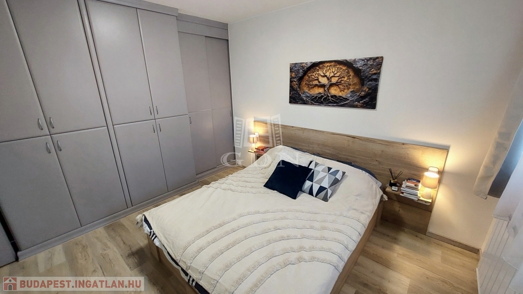 Az ingatlan belső elrendezése tudatos tervezés eredménye. Az előtérből külön WC, egy kis gardrób nyílik, valamint egy igényesen kialakított fürdőszoba. A hálószobában egyedi, beépített gardrób gondoskodik a praktikus és esztétikus tárolásról. A lakás központi tere a tágas, nagy belmagasságú amerikai konyhás nappali–étkező, amely világos, jól bútorozható.