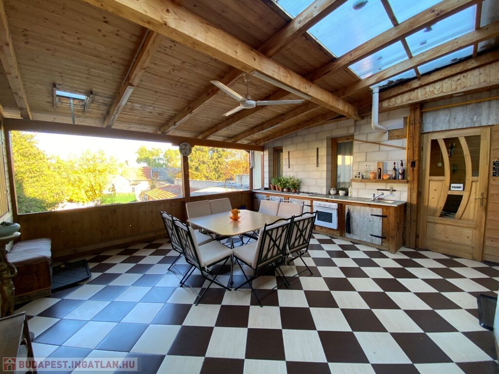A lakás egy zárható 30 m2-es fedett teraszról nyílik, ahol egy nyári konyha teljes felszereltséggel került kialakításra. Ez a terasz közös a mellette lévő lakással ezért praktikus egy család számára.