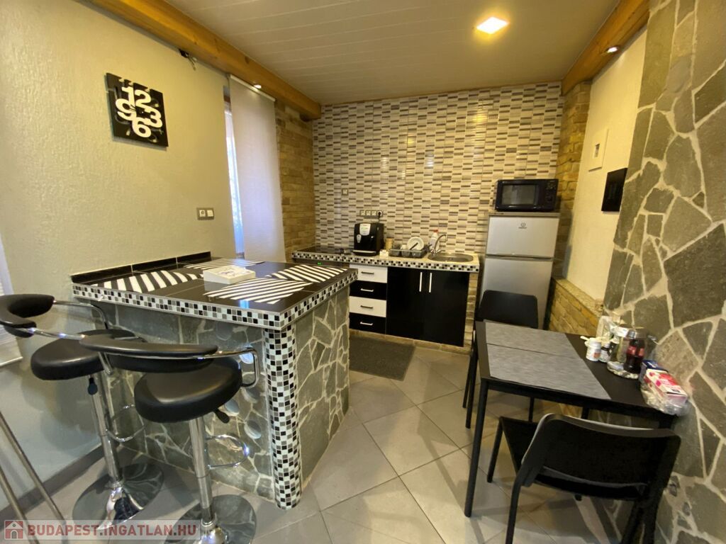 Az ingatlanban található egy fürdőszoba zuhanyzóval, wc-vel; étkező-konyha egybenyitva; egy szoba, melyben galériás megoldással került kialakításra a hálórész.