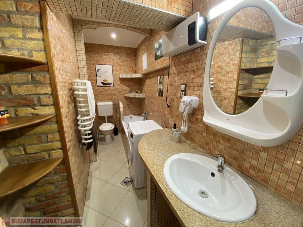 - Fürdőszoba: zuhanykabin, fürdőkád