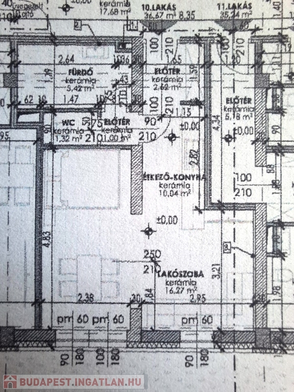 A lakás 36,67 nm, helyiségei:előtér 2,68 nm, fürdőszoba 5,42 nm, lakószoba 16,27 nm, étkező/konyha 10,04 nm, wc 1,62 nm előtér 1,00 nm.