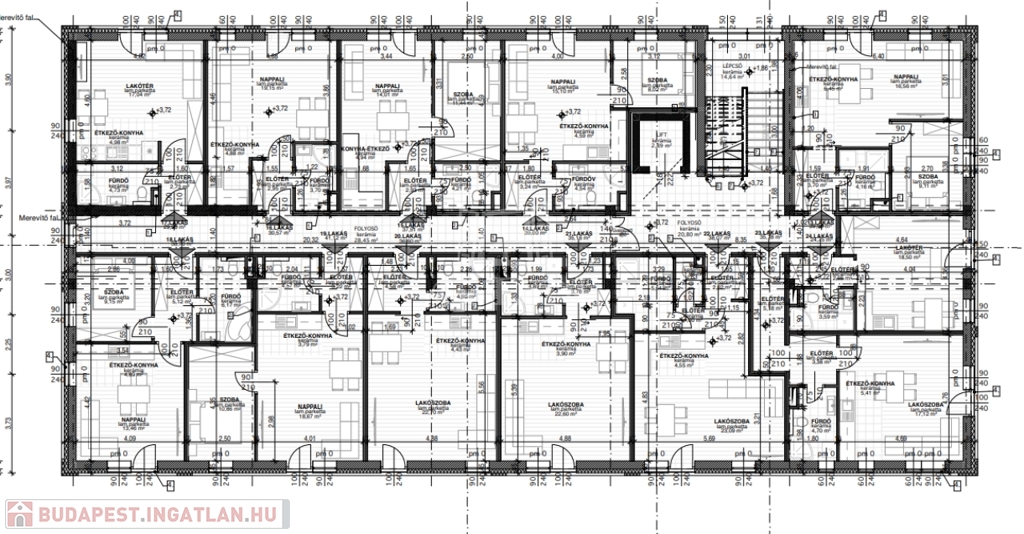 A társas-házban 31 db lakás épül 27 és 54 nm között három szinten,