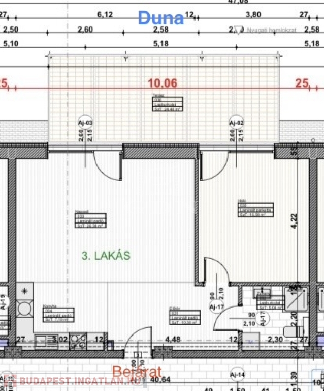 3.LAKÁS: 65,49 m² lakótér + 24,48 m² terasz — 72.040.000 Ft