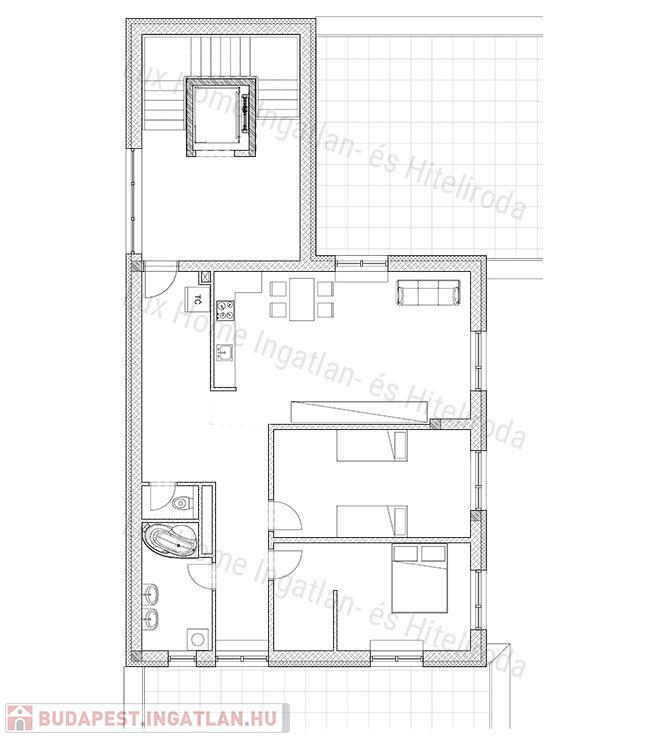 - 26,33 nm nappali konyhával