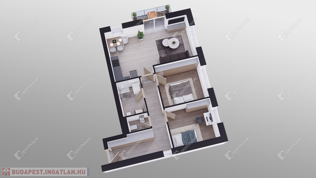 Nappali + 2 hálószoba
