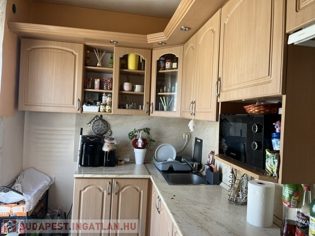 A bejárati ajtó, valamint az ablakok korszerű műanyagok, az ablakokon redőny és szúnyogháló is van. Járólappal burkolt a konyha, fürdő, wc, és a közlekedő is. Elhelyezkedése az épületben szép kilátást biztosít a város nagy részére.