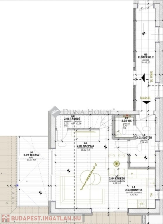 Kozármisleny folyamatosan fejlődő új részén 8 lakásból álló épületben modern, új építésű lakások eladók!Első emeleti belső kétszintes lakás nappali-konyha -étkező, 2 szobás teraszos lakás, saját autó beállóval eladó!4. Lakás első emeleti 77/96m2 helyiség lista:- Nappali- Konyha- Étkező- Terasz 10,27m2- Külön WC helyiség-Tároló helyiségTetőtér:- 2 db szoba- FürdőszobaA lakópark modern, energiahatékony rendszerekkel épül, tökéletes harmóniát képez a természettel.A lakások kényelmes, modern, funkcionális elrendezéssel, szép panorámával, magas, prémium minőségű anyagok felhasználásával csábítják új lakóikat.Minden lakáshoz díjmentes parkolóhely tartozik, a földszinti lakások saját kerttel, az emeleti lakások terasszal rendelkeznek.Az L alakú épület egy védett közösségi teret ölel körül, ahol egy közös park kerül kialakításra. Ez a védett közösségi tér az igények szerint alakítható. Lehet találkozási pont, akár medence és játszótér is megvalósítható erre a területre.A környezet kisgyermekes családok részére is biztonságos, sebességkorlátozott övezet, a közelben új óvoda, kiváló iskola is várja a gyerekeket.Műszaki tartalom:- 30cm X-Therm vázkerámia falazó-blok, 12cm grafitos hőszigetelés- 30cm födém szigetelés- Hőszigetelt műanyag nyílászárók- Földszinti gépházban kialakított hőszivattyús padlófűtésrendszer és lakásonként fan-coil gyors felfűtésre és hűtésre alkalmas rendszer, HMV körben kialakított használati melegvíz cirkulációs rendszer- Konyhákban, fürdőszobákban, Wc-ben kialakított szellőztetőrendszer közvetlenül a szabadba vezetveAz épületben még több lakás elérhető, érdeklődjön a lakások után!