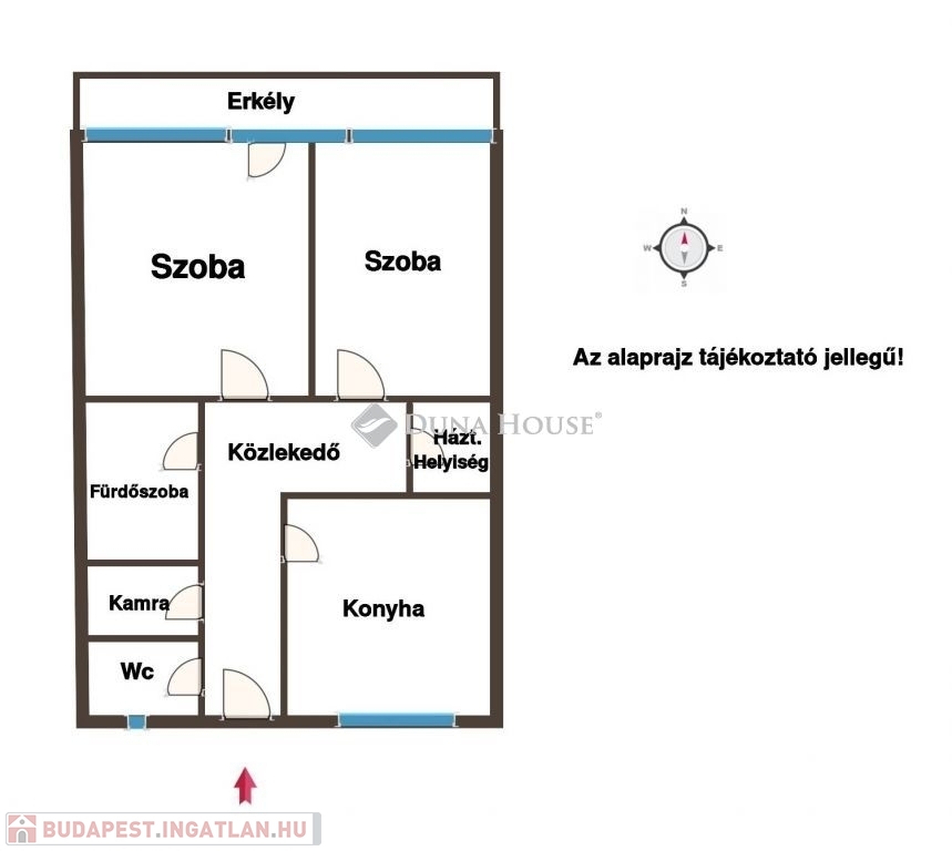 2szoba, konyha, háztartási helyiség, kamra,közlekedő, fürdőszoba, Wc.