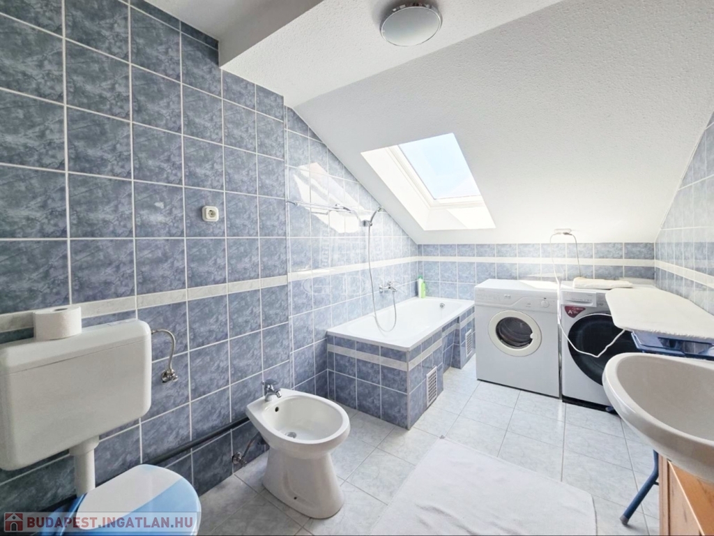 A lakás két teljes fürdőszobával és két toalettel rendelkezik, így nagyobb háztartások számára is komfortos.