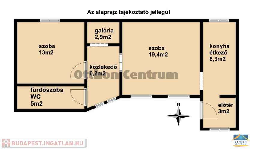 - helyiségei: előtér, konyha + étkező, 2 szoba, egy kis galéria, közlekedő, fürdőszoba