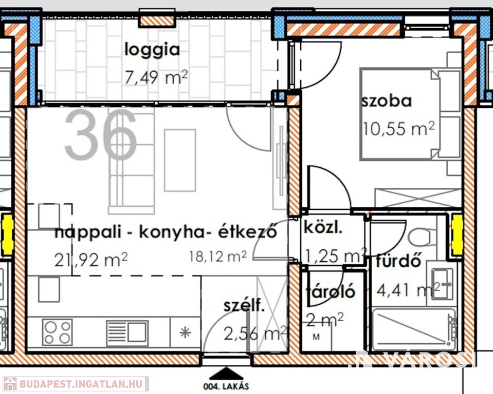 A 1 db amerikai konyhás nappalival, 1db hálószobával, 1 db fürdőszobával, közlekedővel, loggiával rendelkezik.
