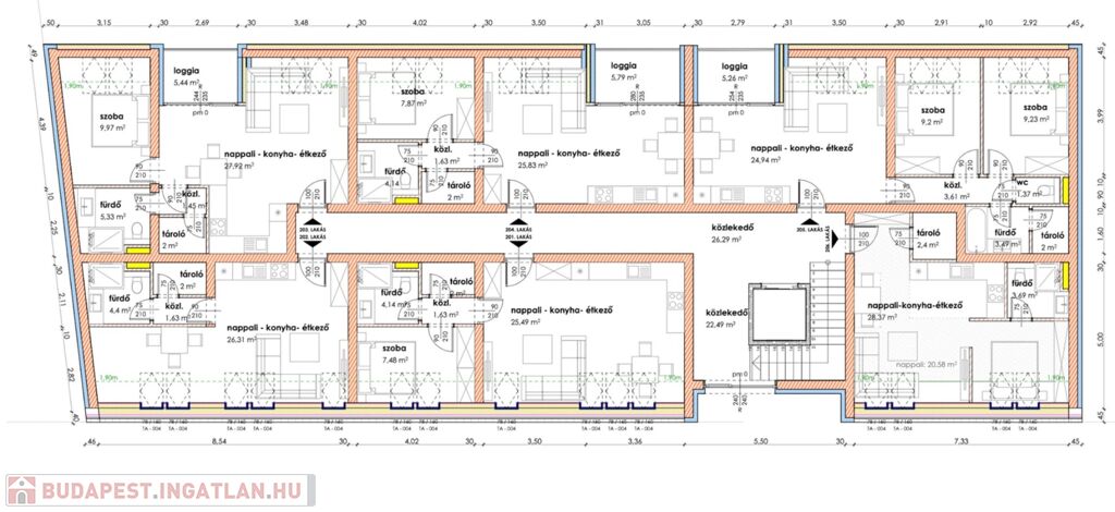 Makón, presztizs lokációval rendelkező - Makói fürdőtől 60 méterre, a Napfény Residenceben - a Páva utcában , Eladó egy most induló, tégla építésű, MÁSODIK EMELETI , 52,11 nm-es élettérrel rendelkező, amerikai konyha nappali plusz egy szobás, loggiás, lakás (203.lakás).