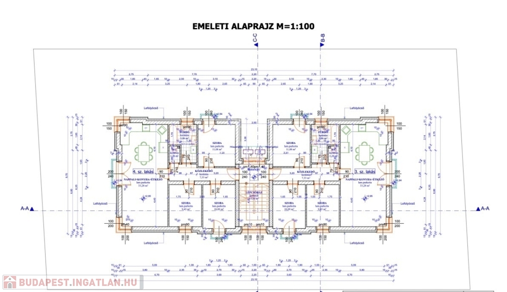 Energiatakarékos kialakítás: 15 cm-es homlokzati hőszigetelés, 3 rétegű műanyag nyílászárók.