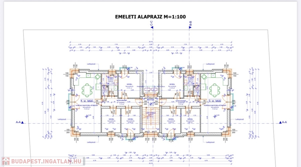 Épületenként 2 földszinti és 2 emeleti lakás