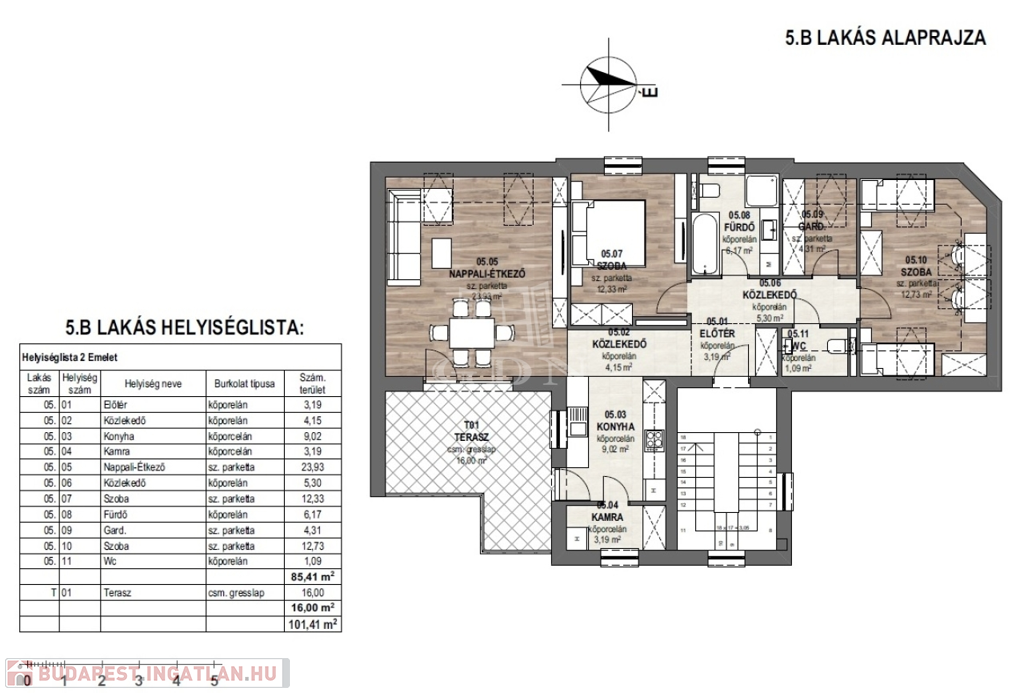 Szintenként 2-2 lakás található, valamint tetőtérből, ahol egy nagyobb alapterületű, lakás helyezkedik el, terasszal. Ez a lakás privát adottságai miatt különösen vonzó lehet. A szintek között kényelmes lépcsőház biztosítja az összeköttetést.