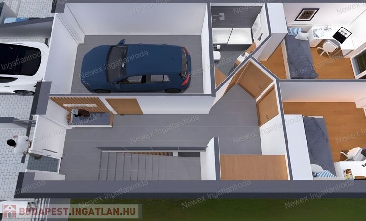 A lakáshoz saját garázs és önálló kertkapcsolat tartozik, így a lakók valódi kertvárosi életérzést élvezhetnek, miközben a városi infrastruktúra is könnyen elérhető.