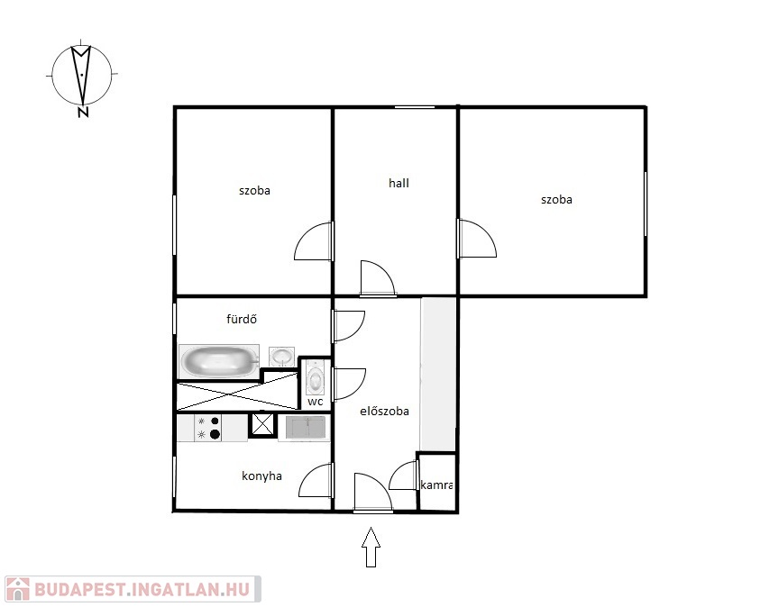 - 3 szoba, előszoba, konyha, kamra, fürdőszoba WC-vel, pince