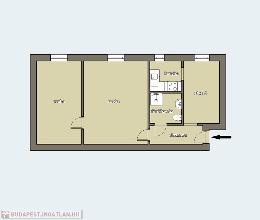 - 2 szoba, előszoba, konyha, étkező, fürdőszoba WC-vel, 4 nm-es pince