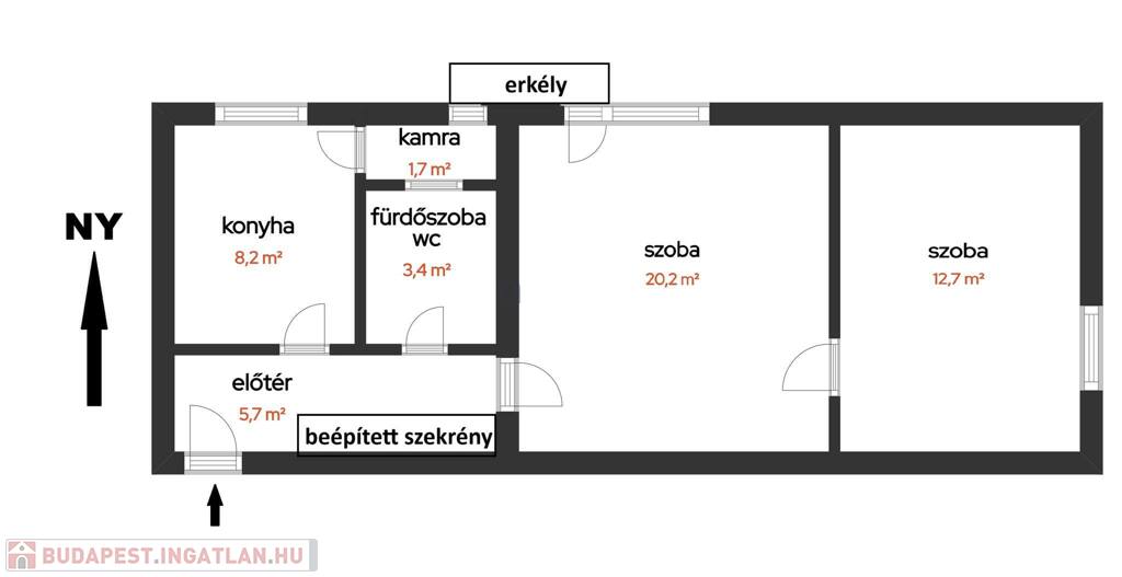 Maga az ingatlan 51 m2-es, jó állapotú, csendes, 2 egymásból nyíló, napfényes szoba jellemzi. A nagyobb szobából egy zöld területre nyíló erkélyre jutunk, ami nyáron hűs pihenő helyet biztosít.