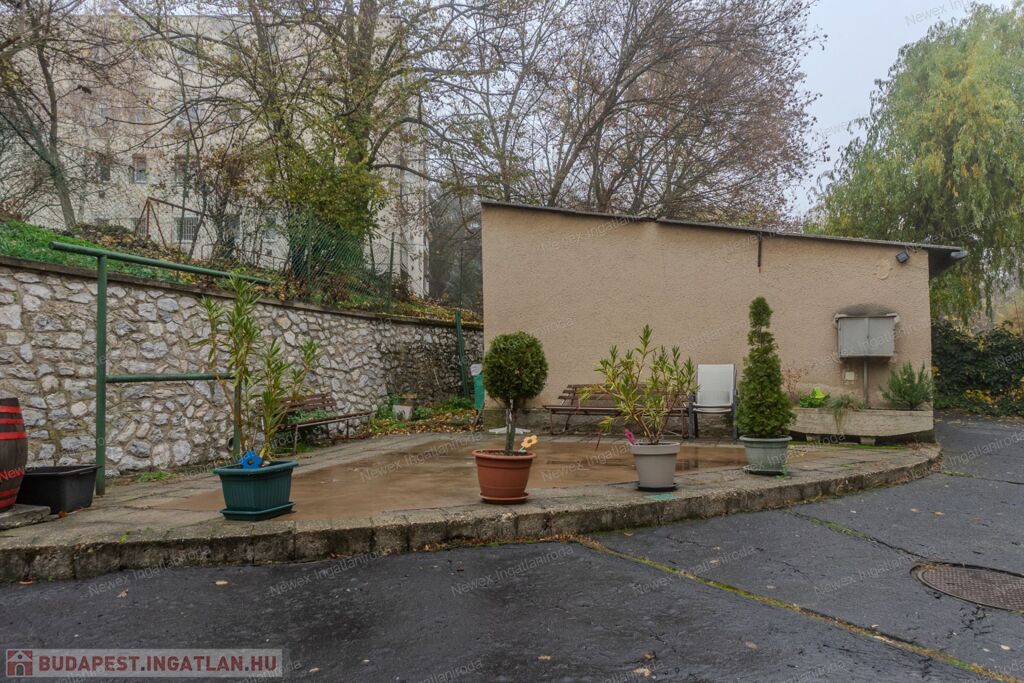 A társasház zárt udvarral rendelkezik, elektromos kapuval, ahol egy kialakított pihenőrész is helyet kapott — tökéletes hely kikapcsolódáshoz.